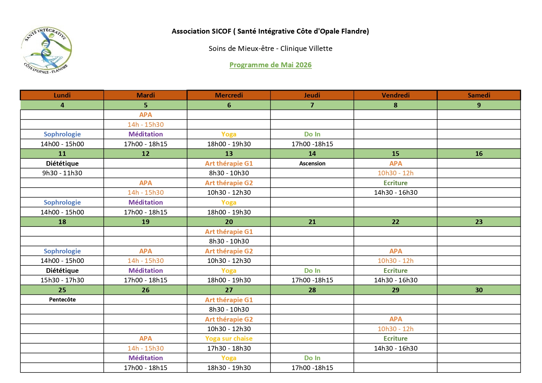 Planning Clinique Villette