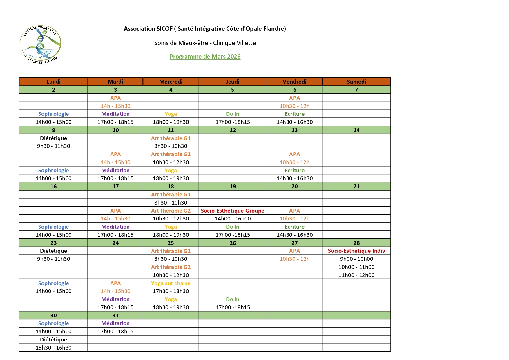 Planning Clinique Villette
